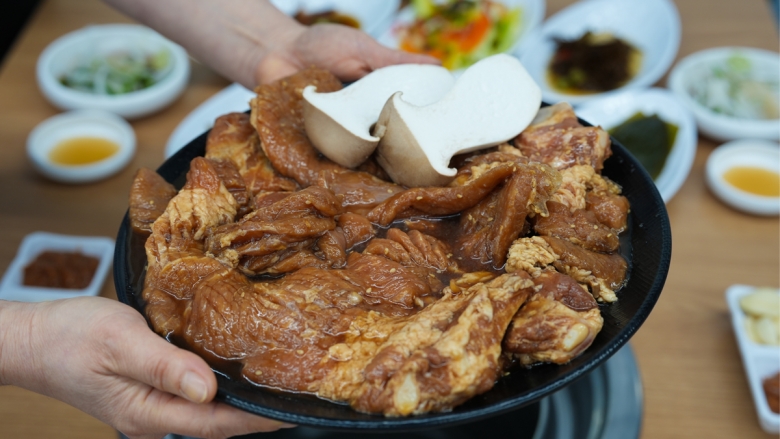 특제 레시피로 양념한 돼지갈비 전통적인 맛과 현대적인 취향의 조화